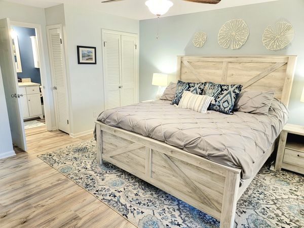 Almost EVERYTHING in this home is BRAND NEW (2022). This home defines luxury and relaxation. With all new furniture and featuring many local artists' work, this is a place you will be sad to leave. Featuring 1 Bedroom with King Sized bed (New Helix Midnight Mattress 2022) and 1.5 baths with Quartz counters. The maximum occupancy is for 4 guests (brand new Queen sleeper sofa in the living room). Enjoy the pond views from the large balcony off the living room and dining room. Cushions for the hammock chair and patio furniture are provided in the laundry room. We want you to have a relaxing vacation so have appointed the home for maximum convenience!